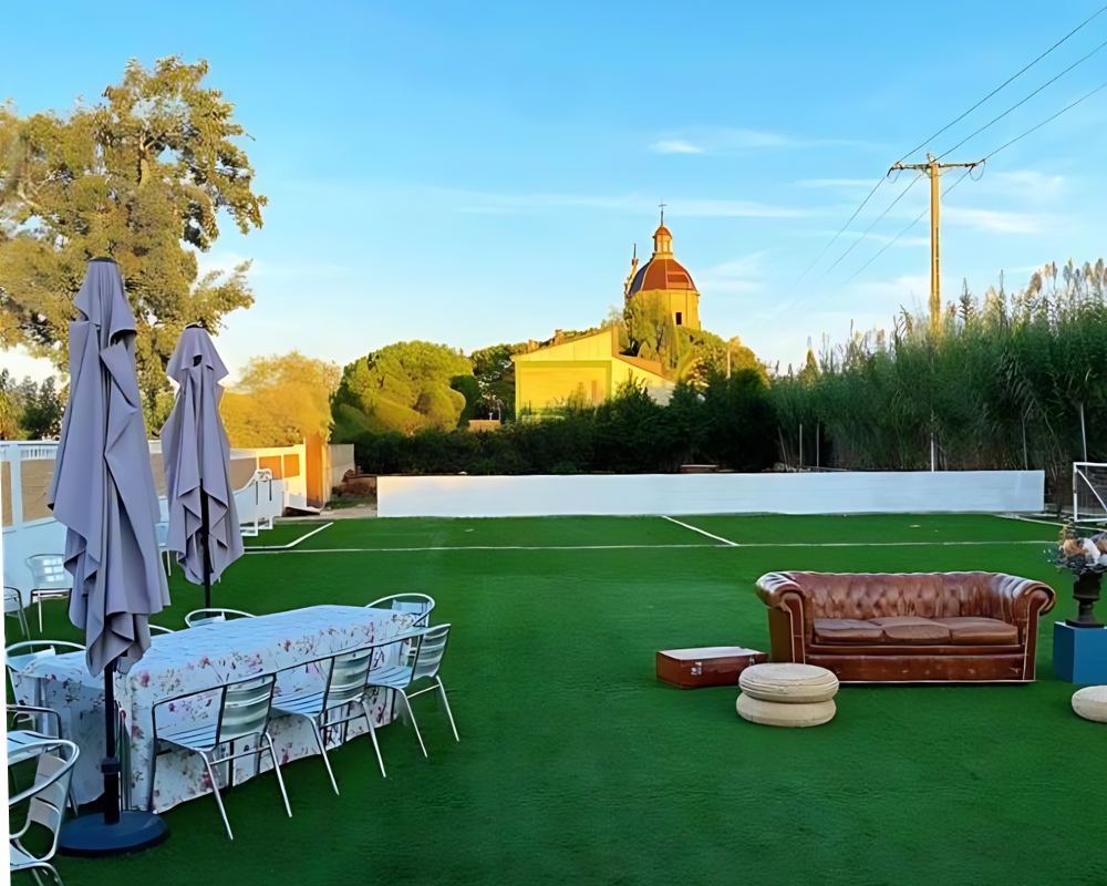 Podrás disponer de un jardín de césped artificial de más de 600 m2, con unas vistas espectaculares al Monasterio de Santafé. Con mini-campo de fútbol privado para los más futboler@s, todo un lujo! Además disponemos de zona de aparcamiento exclusiva para tus invitados, colindante al jardín.